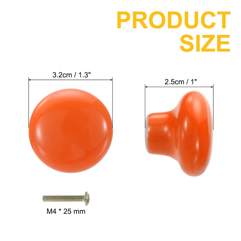 uxcell 2 Packs Ceramic Drawer Knobs, Round Dresser Pulls, Decorative Drawer Knobs with M4 x 25mm Screw for Cupboard Wardrobe, Orange
