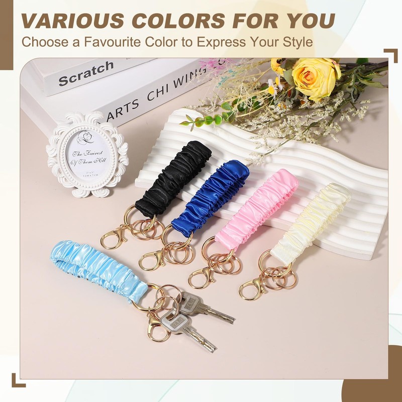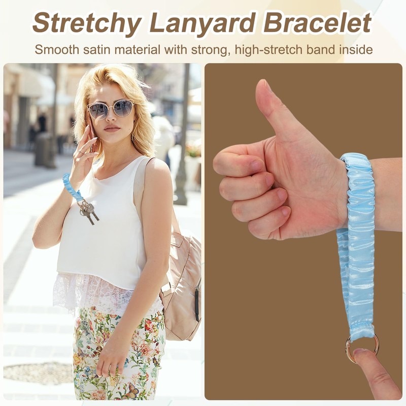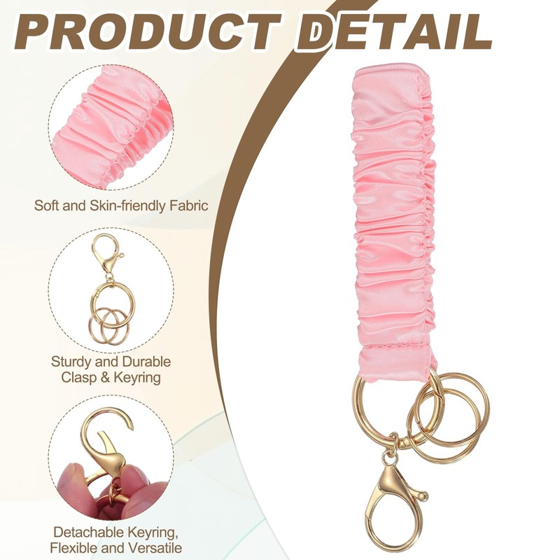 Comfortable Material: The fabric loop of the wristband key ring is made of soft satin fabric with a highly elastic elastic band inside. This design can be easily stretched to suit different needs and has good deformation resistance. The metal accessories are made of alloy material, which is not only sturdy and durable but also has excellent wear resistance. Its surface has a lasting luster and will not fade over time.