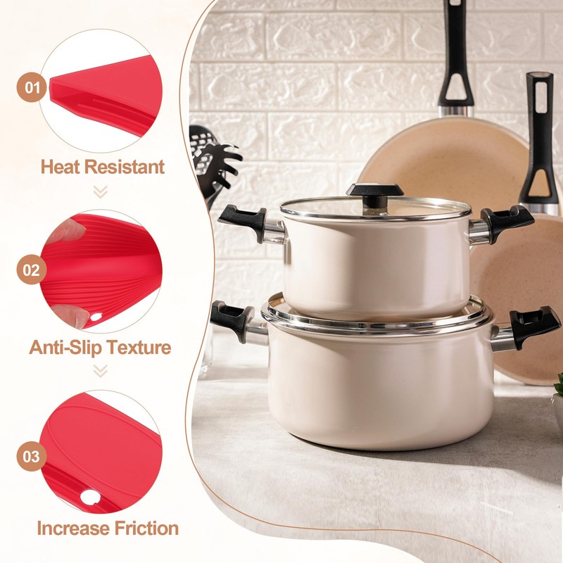 • Package & Size - You will get 2 pcs hot handle covers, measuring 140 x 20 x 50 mm/5.5 x 0.8 x 2 inches and 80 x 50mm/3.1 x 2 inch. Please check the size before buying, the handle width corresponds to the thickness of the pot handle, choose the right size and color