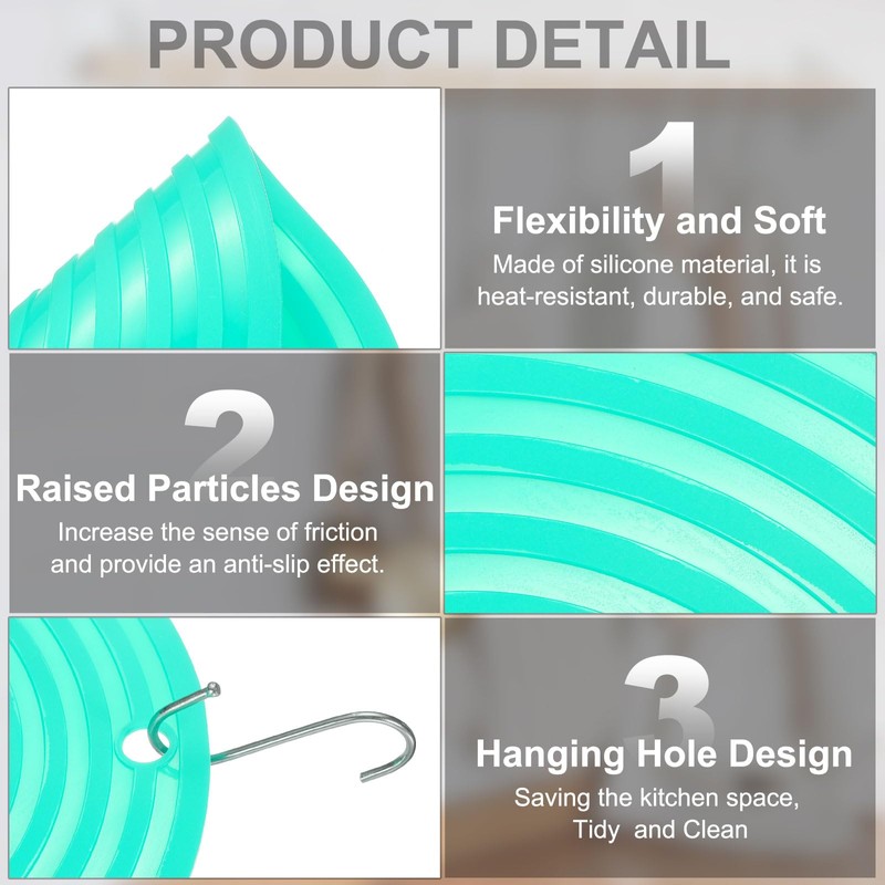 - Raised Particles Design: The silicone trivets feature raised particles that increase the sense of friction and provide an anti-slip effect. The raised particles help with heat dissipation to protect your hands and desktop.