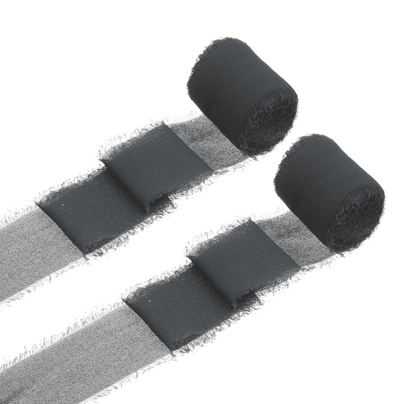 uxcell 2 Rolls Chiffon Ribbon, 1.5 Inch x 5 Yard Handmade Fringe Silk Frayed Ribbon for Flower Bouquet Wrapping Wedding Decoration Bridal DIY Crafts Deep Grey
