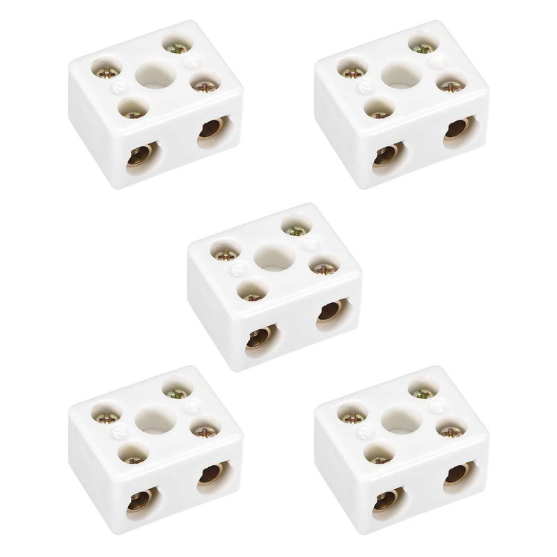 uxcell 2 Way Ceramics Terminal Blocks High Temp Porcelain Ceramic Connectors for Electrical Wire Cable 5pcs