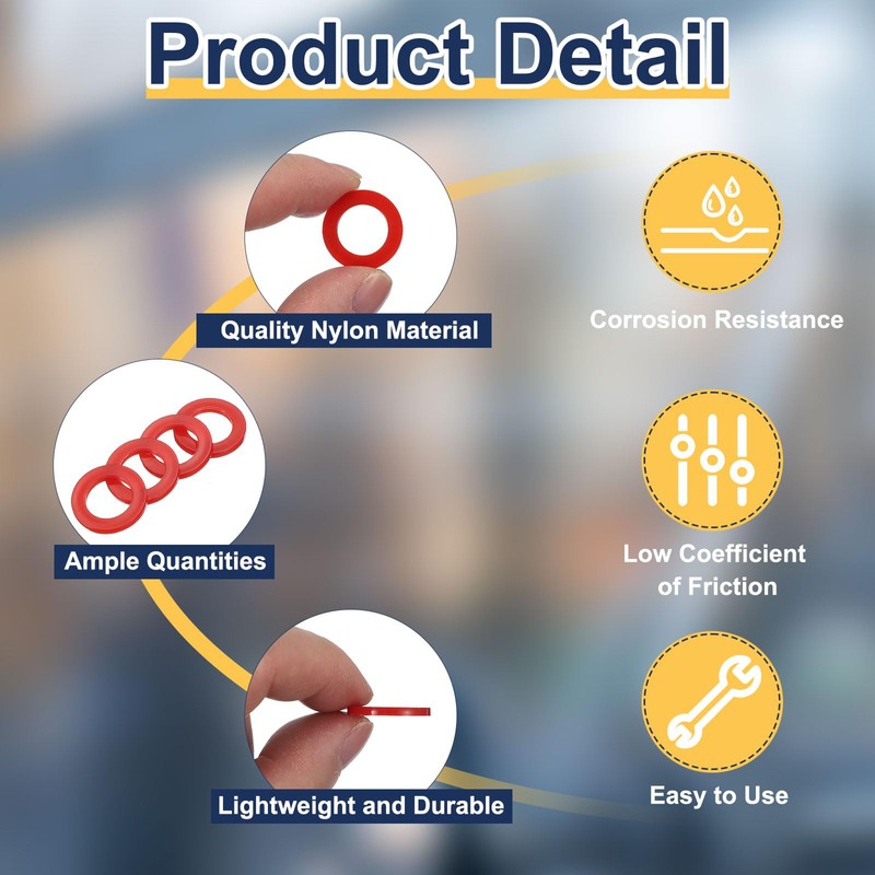 - Material: Made of durable nylon material, these washers are lightweight, offer good insulation, are rust and corrosion-resistant, portable, and durable. They exhibit superior rust and oxidation resistance, ensuring longevity.