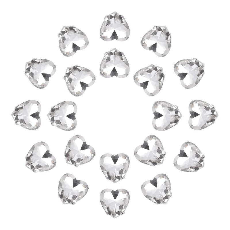 uxcell 20Pcs Heart Sew on Rhinestone, 12x12mm Heart Crystal Glass Rhinestones Metal Flat Back Gems with Silver Prongs Setting for Crafts, DIY Jewelry, Clothes (White)