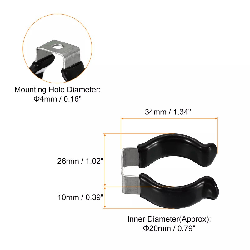 20pcs T8 U Clips Holder Bracket for LED Light Bulb Mounting Pipe Clamps Black