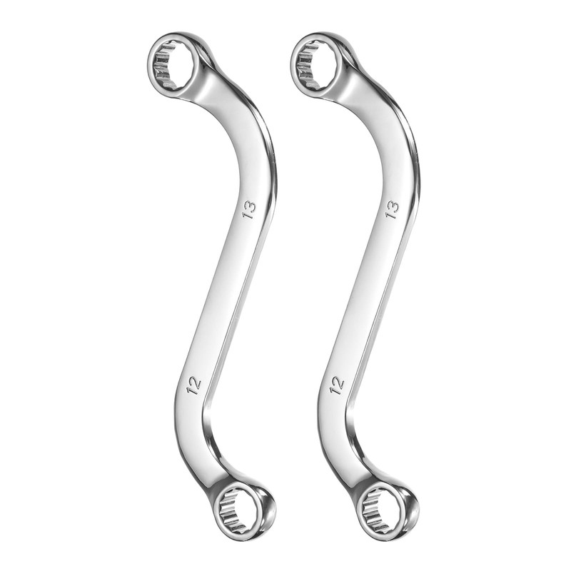uxcell 2pcs 12mm x 13mm Metric 12-Point S-Style Box Wrench Double End S-Shaped Wrench Chrome Plated 45# Steel S Box Wrenches for Home Auto Bike Repair Machine Maintenance