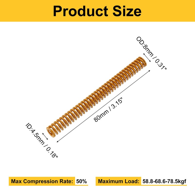 uxcell 2pcs 3D Printer Heating Bed Spring, 8mm OD 80mm Length Light Load Compression Mould Die Spring 3D Printer Compression Spring for 3D Printer Electric Part, Yellow