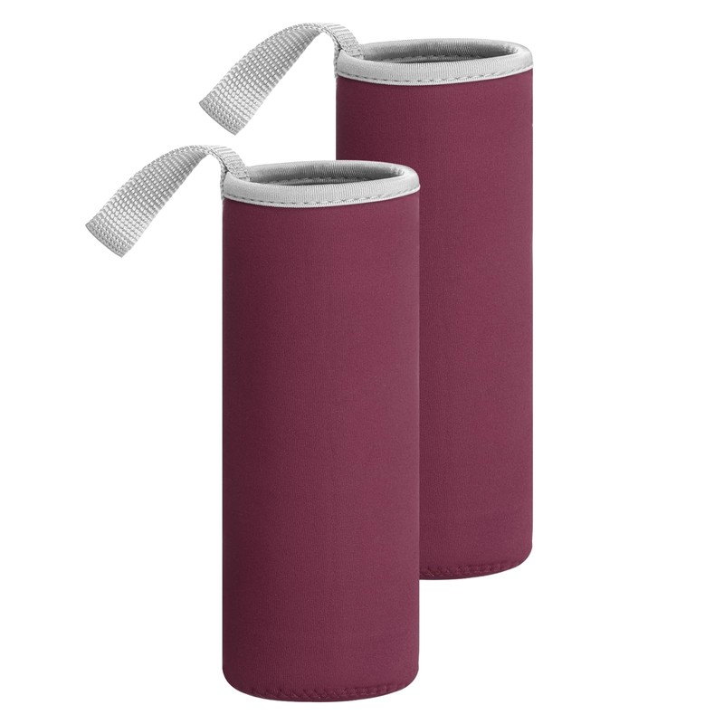uxcell 2pcs Neoprene Water Bottle Sleeve, 18.5 oz Insulated Water Glass Bottle Carrier Bag Collapsible Drink Bottle Sleeve Cover Holder with Handle, Wine Red