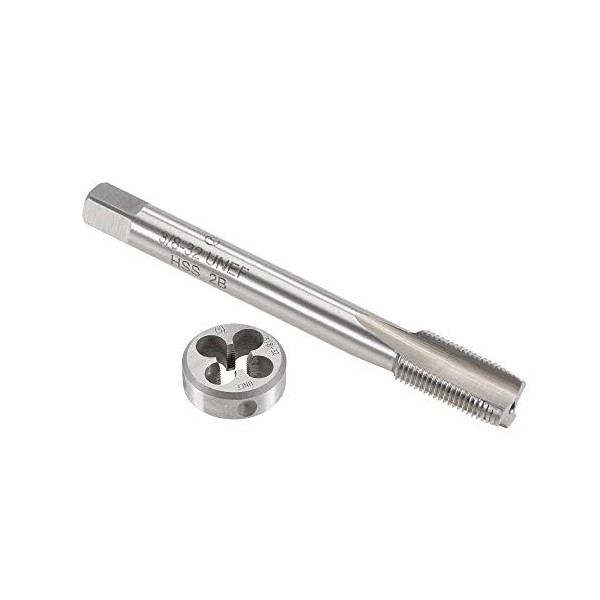 uxcell 3/8"-32 UNEF Tap and Die Set, HSS Machine Thread Tap with Round Threading Die, Right Hand