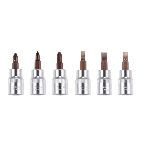 - 【Size】 3/8’’ drive socket, PH1 PH2 PH3 FD4 FD5.5 FD6.5 bit sockets, 1.89" (48mm) total length.