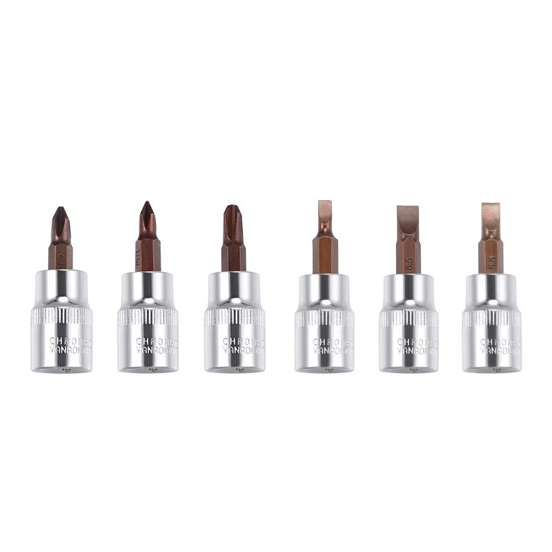 uxcell 3/8" Drive Phillips Slotted Bit Socket Set, S2 Steel Bits, CR-V Sockets 6-Piece (PH1-PH3, FD4-FD6.5)