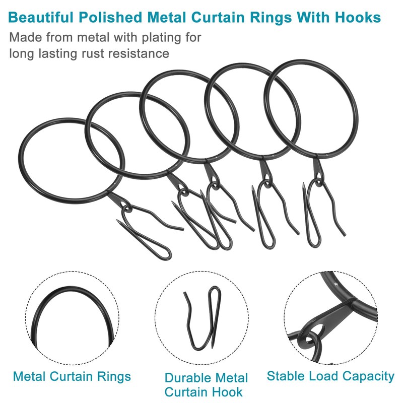 • Package Includes: This pack contains 32 metal curtain rings and 32 metal curtain drapery pin hooks. Combined and in sufficient quantities to meet your different needs.