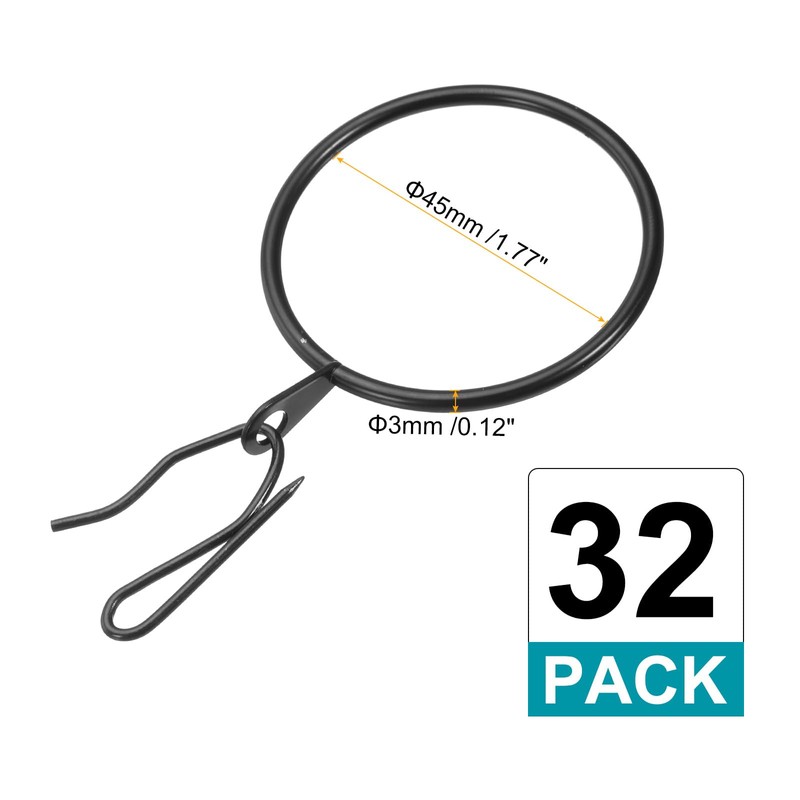 uxcell 32 Pieces 1.8" Inner Diameter Metal Curtain Rings with Pin Hooks, Drapery Curtain Hanging Rings and Metal Curtain Drapery Pin Hooks for Window Shower Curtain (Black)
