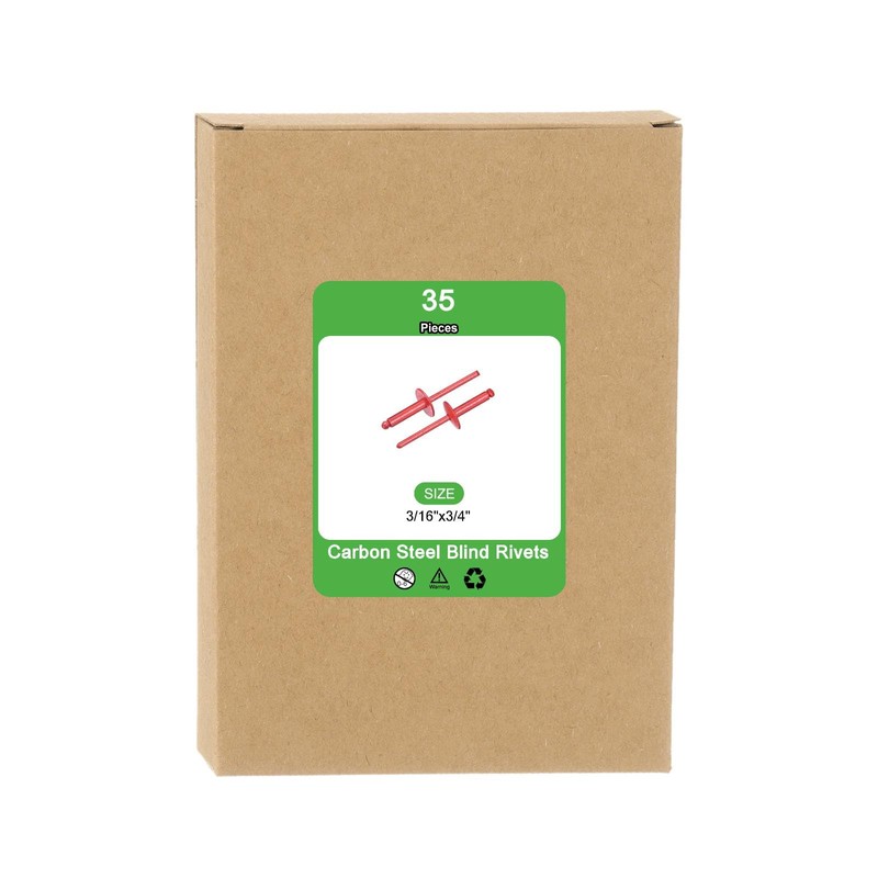 uxcell 35Pcs 3/16"x3/4" Large Flange Head Blind Rivets, Zinc-Plated Carbon Steel Grip and Mandrel Cap Blind Rivets, Red