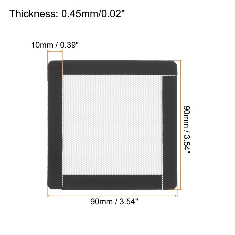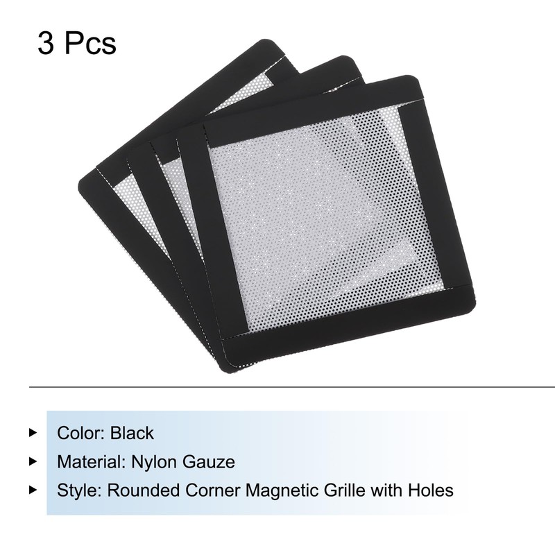 - Size: 90 x 90mm / 3.54 x 3.54 inches (L x W); Magnetic Strip Width: 10mm / 0.39"; Hole Diameter: 0.8mm / 0.03"; Thickness: 0.45mm / 0.02"; Color: White; Material: PVC; Style: Magnetic mesh cover without corner round holes; Package Includes: 3 pcs PC case accessories