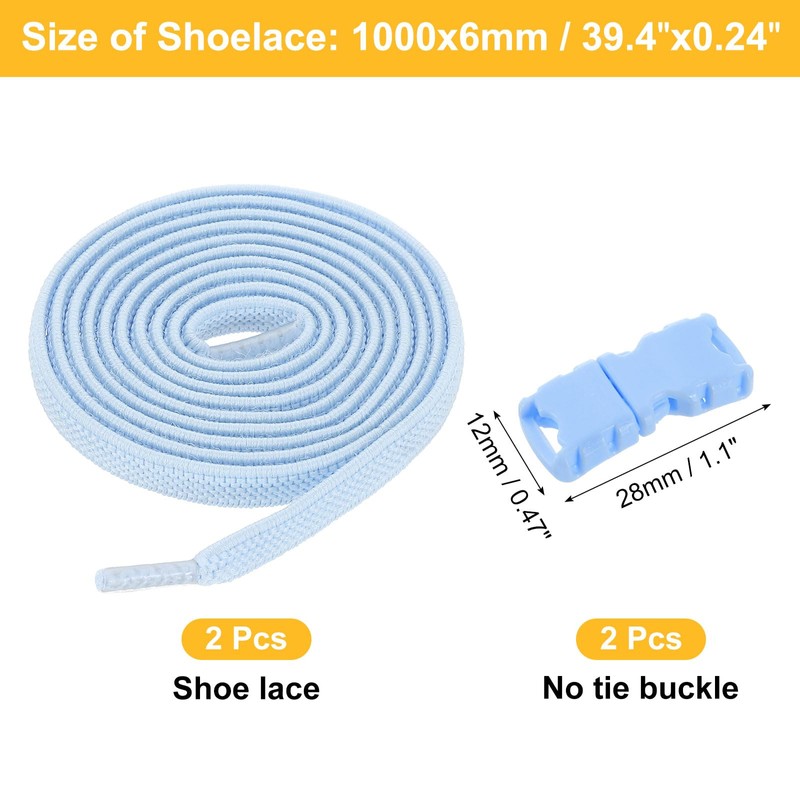 - Dimension: Size of Shoelace: 1000x6mm / 39.4x0.24 inches; Size of Shoelace Buckle: 28x12mm / 1.1x0.47 inches; Package Content: 2 x Shoelace and 2 x Shoelace Buckle