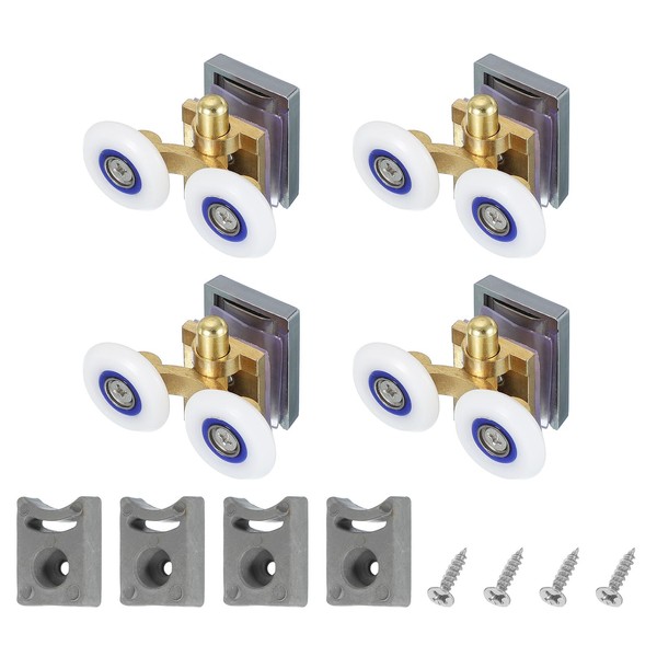 uxcell 25mm Shower Door Rollers, Sliding Shower Doors Wheels 304 Stainless Steel Bottom Wheels with Anti-Collision Block & Screws for Glass Doors 6mm Copper 4 Pcs