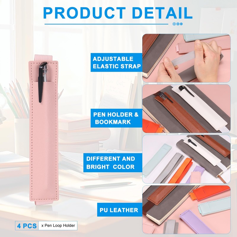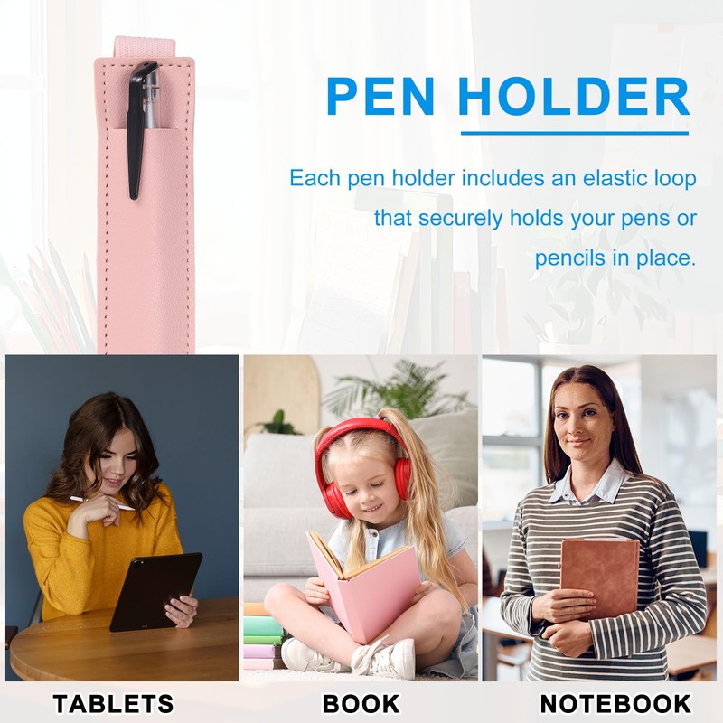 - PU Material: Durable and stylish, the pen loop holders are made of PU leather. Each pen holder includes an elastic loop that securely holds your pens or pencils in place, ensuring a snug fit for writing instruments of various sizes.