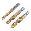uxcell 4341 Combination Drill and Tap Bit Set, M6, M8, M10, Titanium Coating, High Speed Steel, Spiral Flute, Drilling Tapping Tool, 0.25 inch (6.35 mm) Hex Shank, Pack of 3