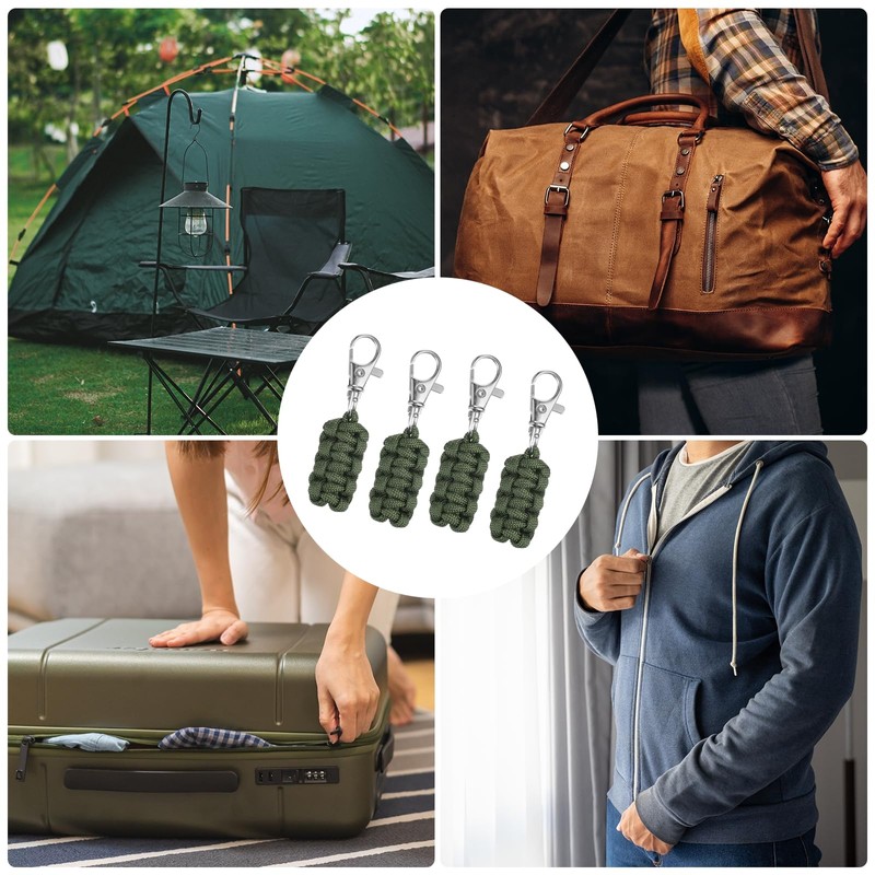 uxcell 4pcs Paracord Zipper Pulls, 3.1" Paracord Lanyard Keychain for Backpacks, Tents, Trolley Cases, Traveling Cases, Key, Jackets, Dark Green