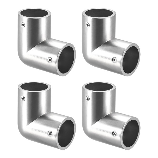 uxcell 4Pcs Rail Elbow Fitting 90 Degree 2-Way Zinc Alloy Pipe Connector Brushed for 25mm/1" OD Handrail Railing