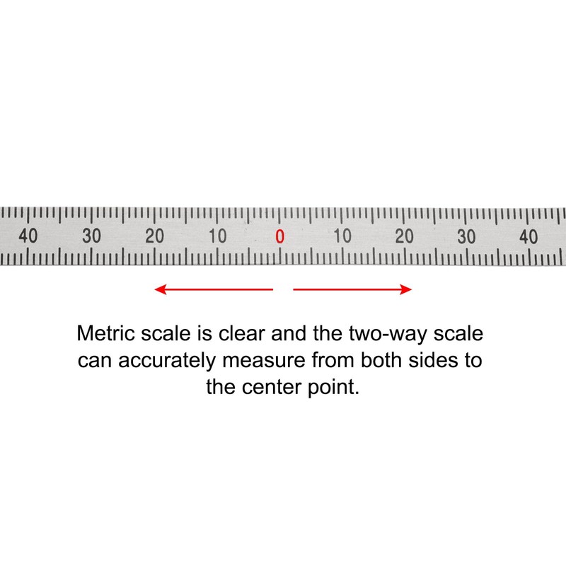 The metric scale is clear and has a bidirectional scale to accurately measure from both sides to the center point for precise measurement.