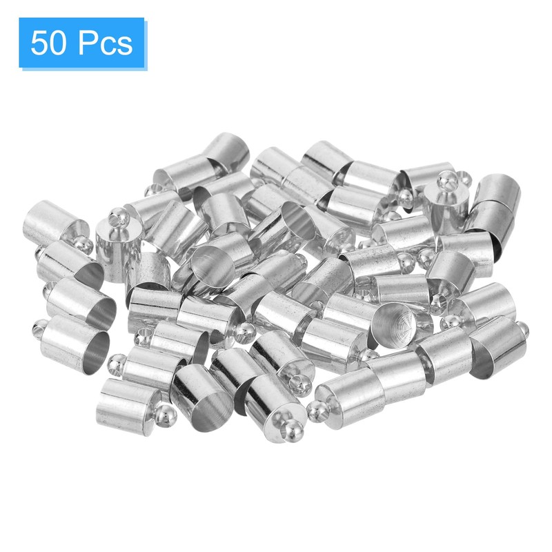uxcell 50Pcs Leather Cord End Caps, 7mm OD Column Barrel Terminators for DIY Making Leather Bracelets Tassels, Rhodium Tone