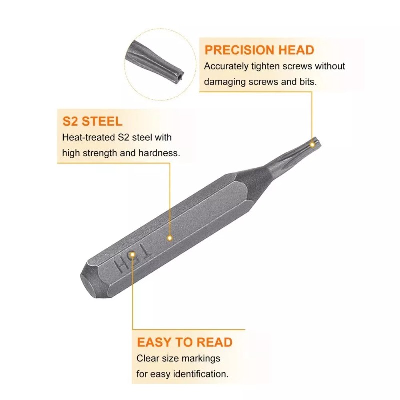 5pcs T5H Magnetic Torx Micro Screwdriver Bit 5/32" Hex Shank 28mm Length S2 Steel
