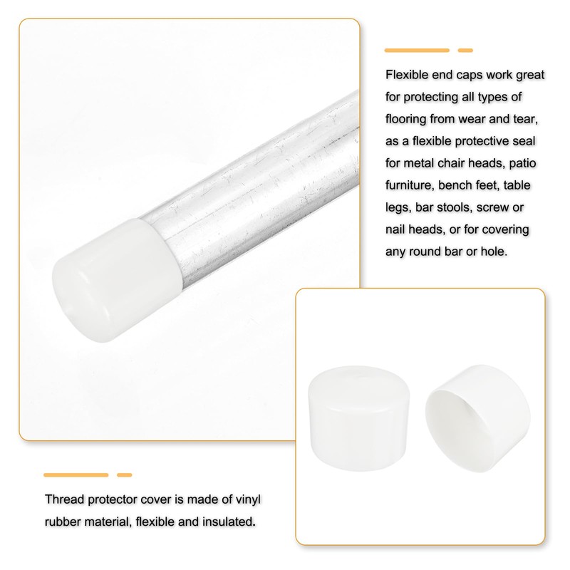 Flexible end caps are suitable for all round tubes, round rods or cylindrical objects in the home, outdoors, bolts and screws, mechanical equipment, fence railing posts, etc.