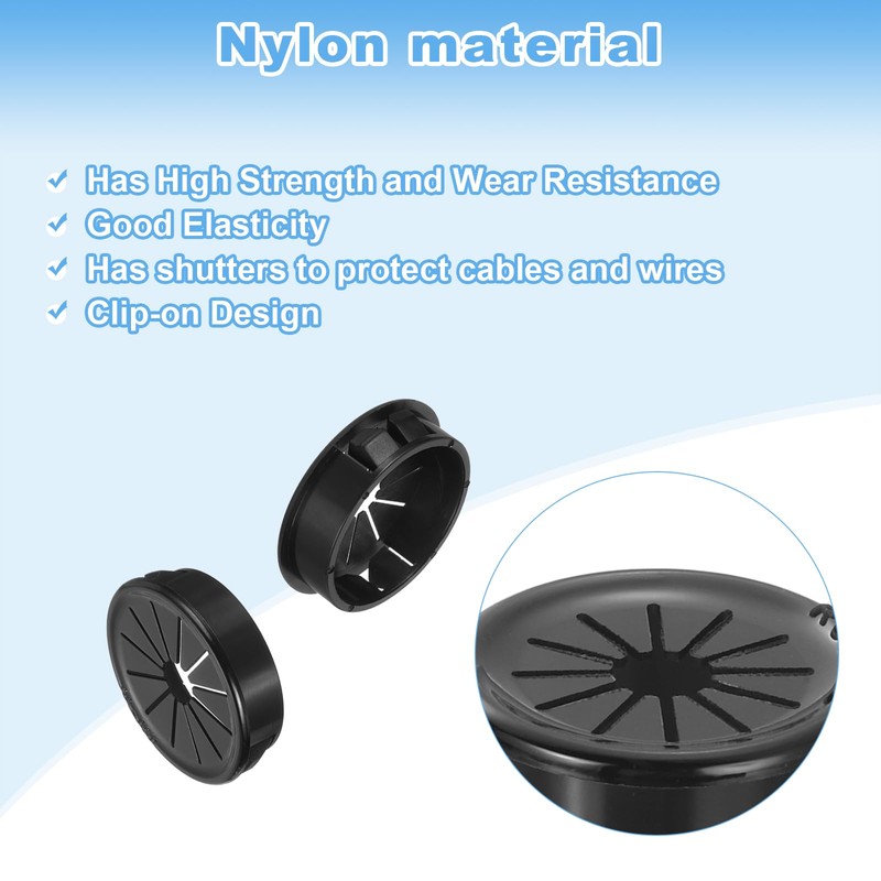 - [Material] Made of nylon material, the snap bushing with shutter has high strength and wear resistance, good elasticity, is not easy to deform, is corrosion-resistant has good insulation properties, and can be used for a long time.