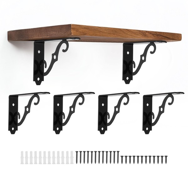 - Easy Install: The wall-mounted shelf brackets with pre-drilled holes, attach the brackets to the wall using the provided tools. Once the brackets are firmly in place, simply attach the shelf on top, ensuring it sits evenly across both brackets for a balanced and stable setup