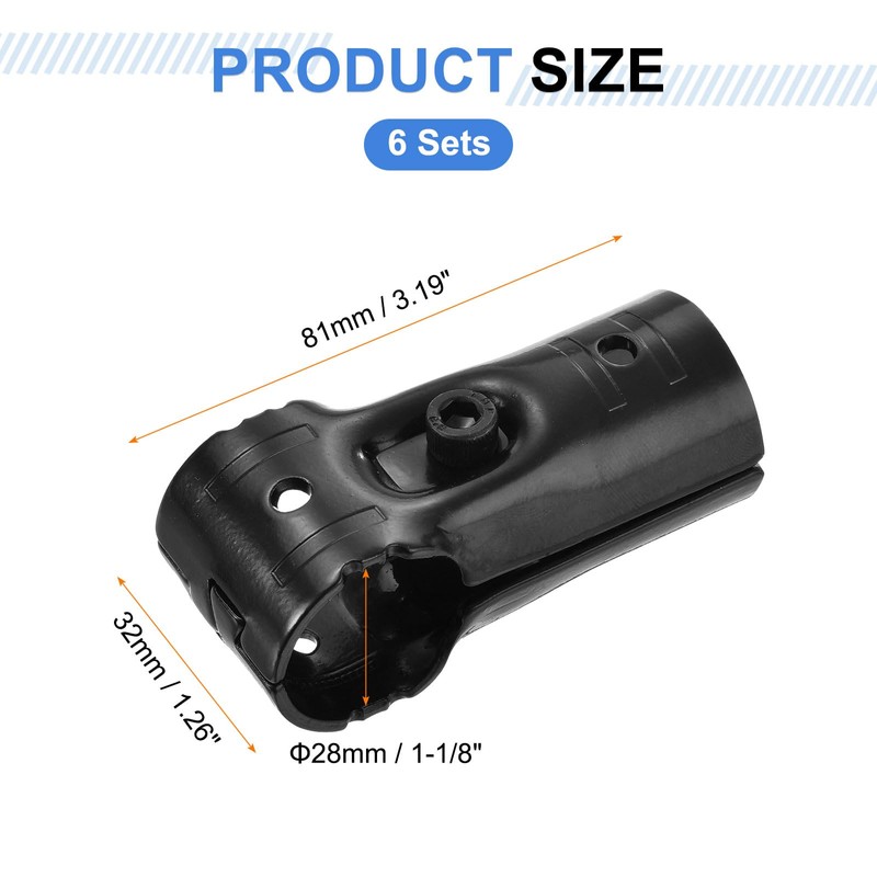 - [What You Get] - The package comes with 6 pcs of pipe clamp connectors, 6 pcs of screws and 6 pcs of nuts. Fit Pipe OD: 28mm/1-1/8inch; Overall Size: 81 x 32mm/3.19 x 1.26inch(L*W).