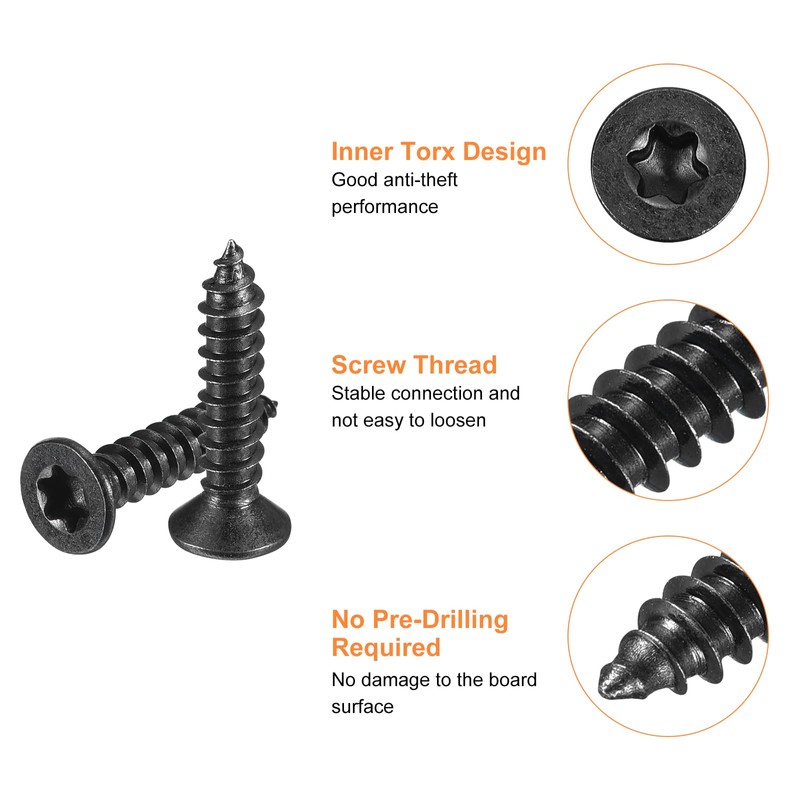 - Torx Drive Bit Size: T15; Head Style: Flat Countersunk; Thread Size: #6 x 3/4-inch (D*L) (Including the Head Height); Package Content: 150Pcs x Flat Head Torx Screws, Please choose the appropriate size according to your specific needs.