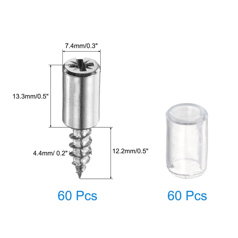 uxcell 60Pcs Screw Shelf Support Pegs, Metal Shelf Pins Self-Tapping Screws Cabinet Laminate Support with Clear Anti-Slip Sleeve for Shelves, Furniture Bookcase Shelf (Clear/Silver)