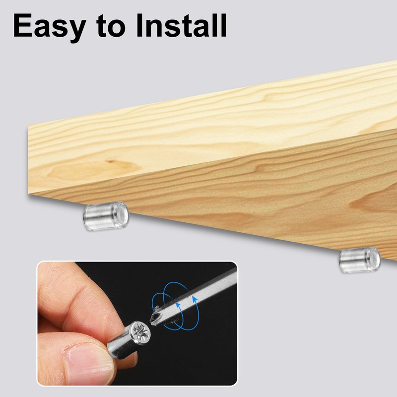 - No Drilling: These pegs come with self-tapping screws that allow for easy installation without pre-drilling holes. A simple installation process just tighten it with a screwdriver. Each shelf only requires 4 screws with a non-slip sleeve, which helps to prevent the shelves from slipping, ensuring a secure fit and stability.
