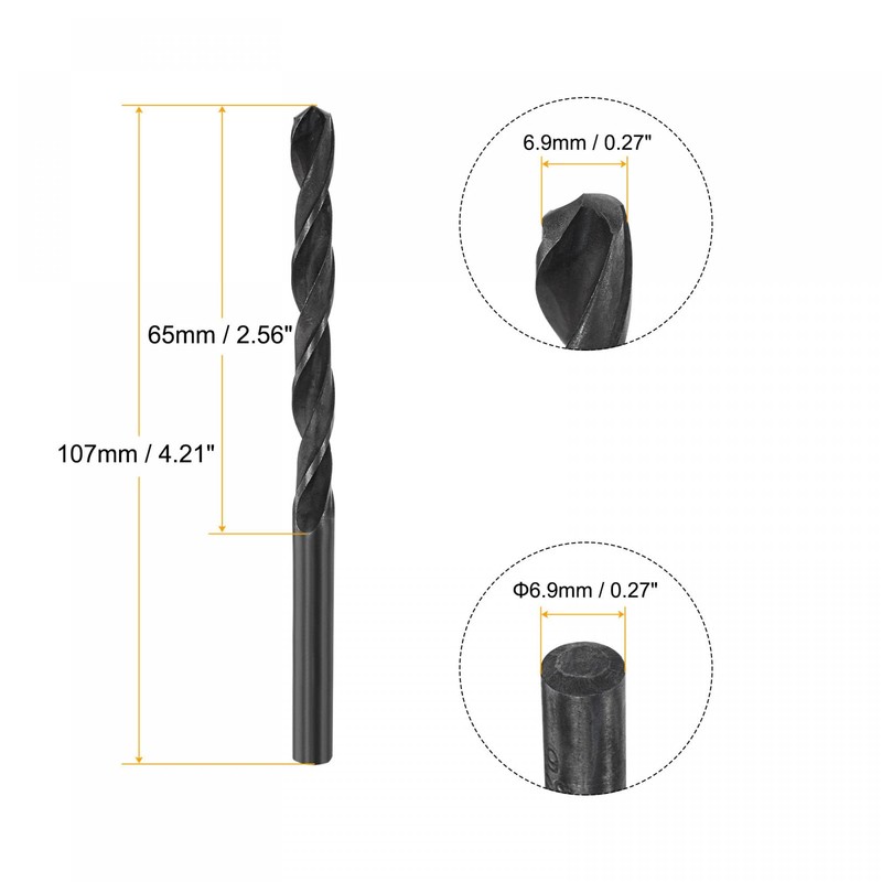 - [Specification]- Twist Drill Bits Diameter: 6.9mm / 0.27-inch, Drill Bit Length: 65mm / 2.56-inch, Shank Diameter: 6.9mm / 0.27-inch, Total Length: 107mm / 4.21-inch, 1 x High-Speed Steel Twist Drill Bit