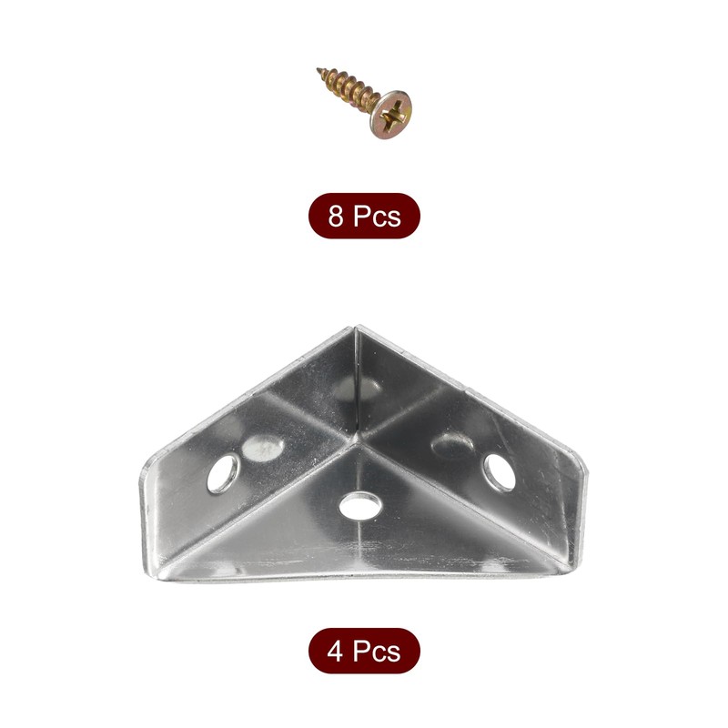 • Dimension - Our corner brace is packed of 8 with 16pack mounting screws and has a compact and convenient size. It measures 38mm/1.5" in height, 38mm/1.5" in width, and 54mm/2.13" in hypotenuse length, making it suitable for various applications. The corner thickness of the brace is 19mm/0.75", and the material thickness is 1mm/0.04", and 5mm/0.2" mounting hole diameter, ensuring that it provides sturdy and reliable support.