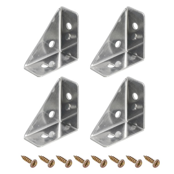 uxcell 8Pcs Angle Corner Brackets 38mm x 38mm, Stainless Steel Braces Joining Support with Screws for Desk Bed Edge (Silver)