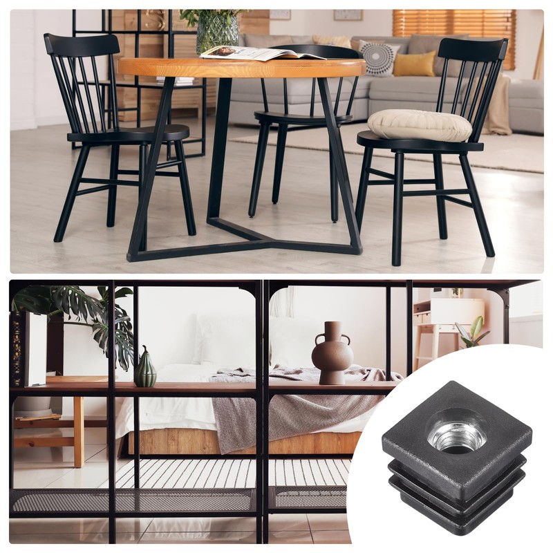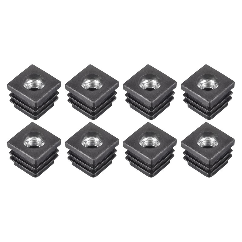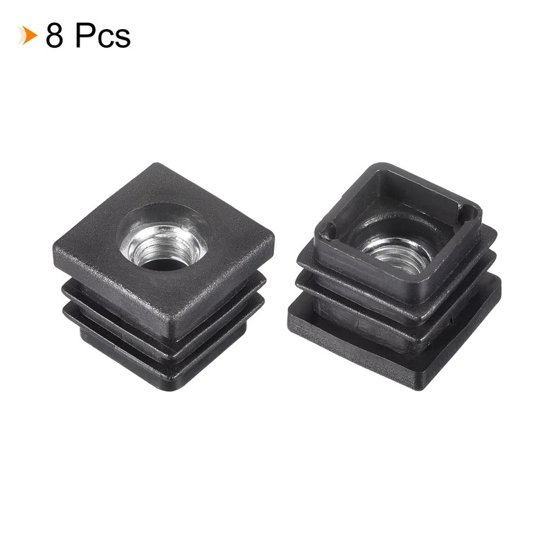 uxcell 8Pcs Inserts for Square Tubes with M8 Thread, for 0.79"x0.79" OD Square Tube, Square Black Plastic Plug Caster Insert Chair End Caps Furniture Leg Plug
