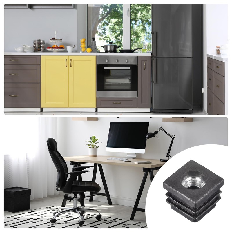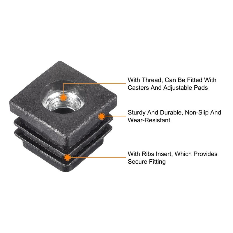 - Material: Plastic; Inner Height: 14mm/0.55"; Overall Height: 18mm/0.71"; Thread Size: M8*1.25; Overall Size: 20x20mm/0.79"x0.79"(LxW); Package Includes: 8 x Threaded Tube Inserts (Does Not Contain Adjustable Leveling Legs)