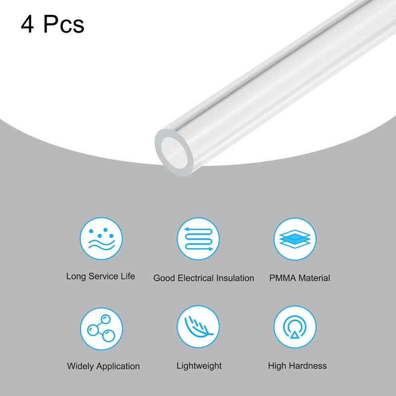 uxcell Acrylic Pipe, Transparent Rigid Round Tube for Lamps and Lanterns, For Water Cooling Systems, Inner Diameter: 0.2 inches (4 mm), Outer Diameter 0.3 inches (8 mm), Total Length: 5.9 inches (15 cm), 4 Pieces