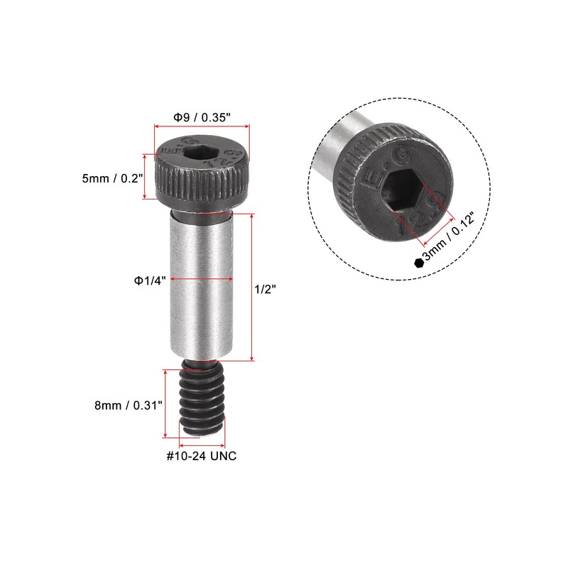 - Thread Size: #10-24; Shoulder Size: 1/2" x 1/4"(L*D)