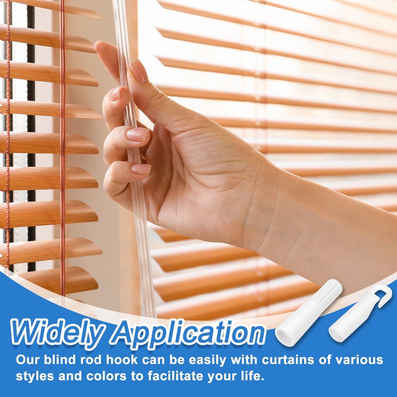 - [Easy to Assemble]: No tools or complicated installation are required. Just insert the hook into one end of the rod and connect the hook to the connecting ring above the blind. Insert the plastic handle directly into the end of the window rod. You can easily adjust the angle of the replacement blind rod and open and close the blinds easily.