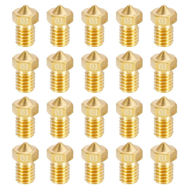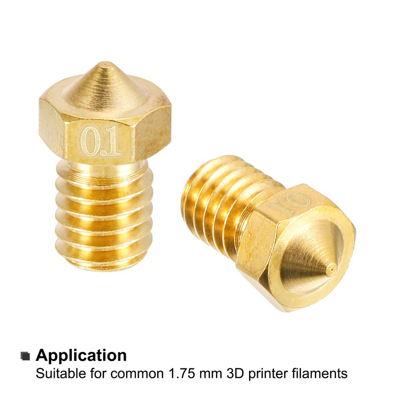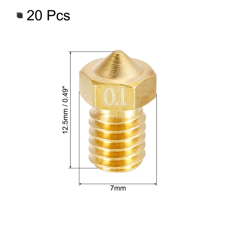 uxcell Brass Nozzle, 0.004 inch (0.1 mm) 3D Printer, Extruder Nozzle Head, M6 Thread, 3D Printer, Nozzle, 0.07 inch (1.75 mm) Extruder, Print, Brass, Pack of 20