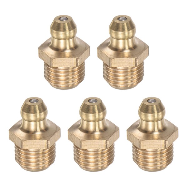 uxcell Brass Straight Grease Fitting M10 x 1mm Thread Hydraulic Grease Fitting Accessories, 5Pcs