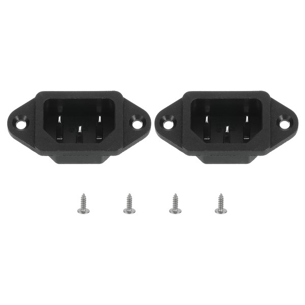 uxcell C14 Panel Mount Plug Adapter AC 250V 10A /5A 3 Pins IEC Inlet Module Plug Power Connector Socket Straight with Screws 2pcs
