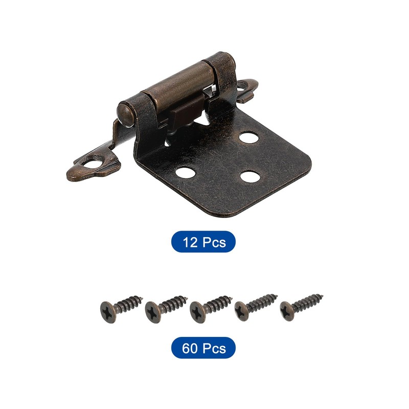 uxcell Cabinet Kitchen Inset Hinges, 12Pcs 1/2" Overlay Semi-Concealed Hinges Face Mount Cabinet Hardware Self-Closing Cabinet Hinges with Screws, Copper Red