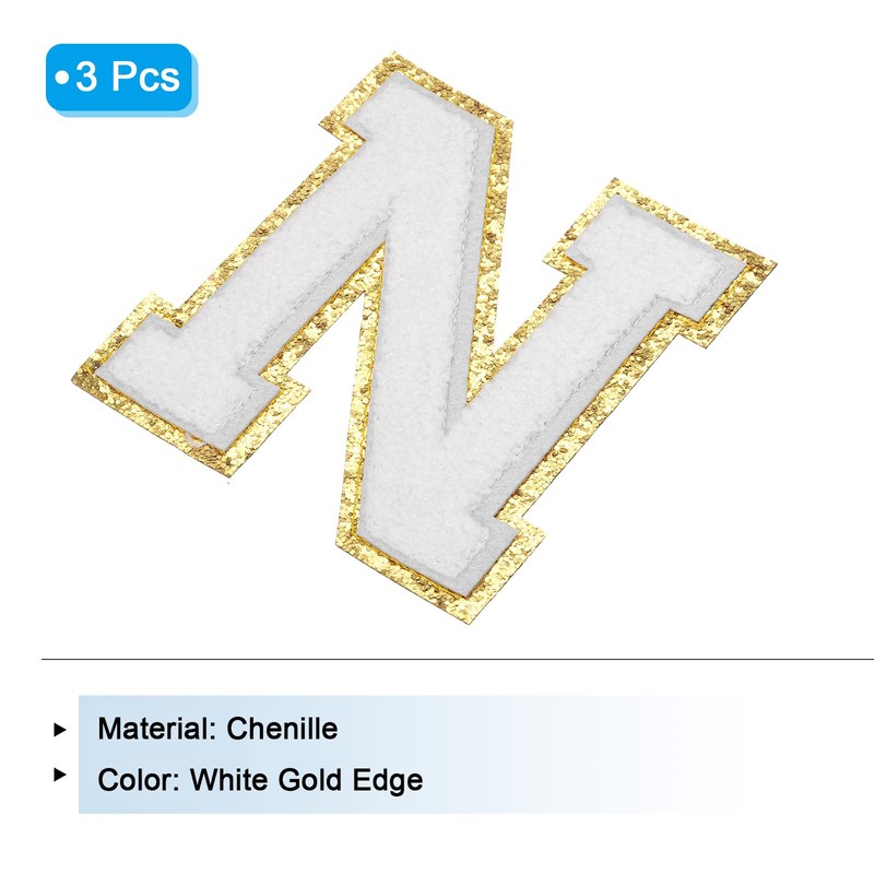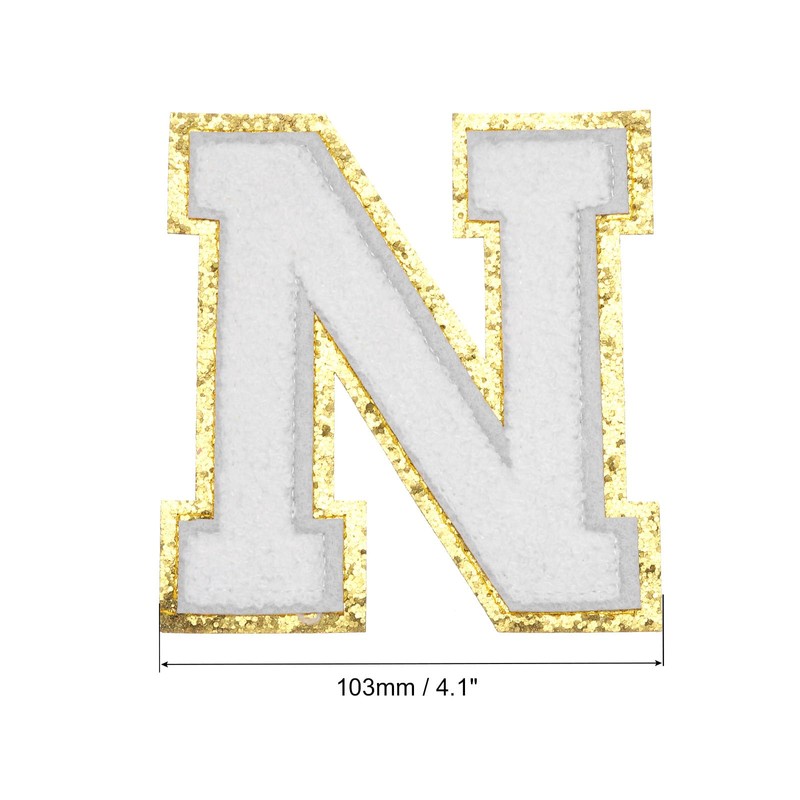 uxcell Chenille Letter N Patch Large Size 4-1/2" Iron on Letter N Patch Gold Flash Patch for Clothing, Shoes, Hats, Backpacks, Set of 3 (White)
