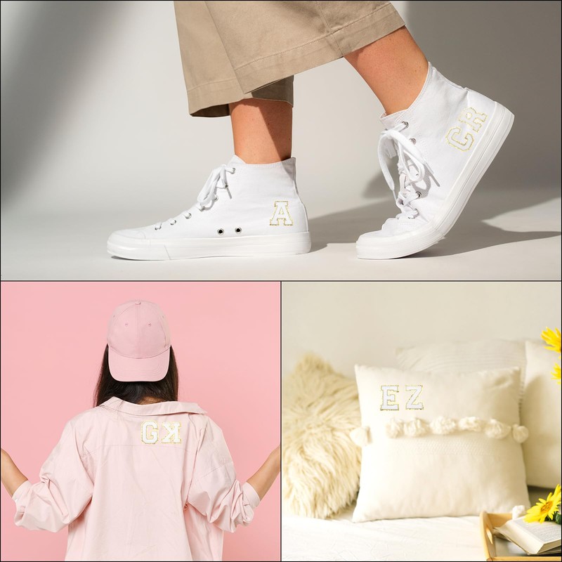 - 1. Iron-on letter patches are made of premium towel embroidery and are machine washable. In addition, the strong heat sealant glue on the back is durable. 2. Gold flashing edge makes your personal letter patches more exquisite and stylish. DIY 26 letters to form your own words or logos of your choice