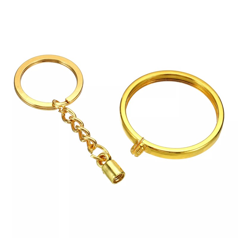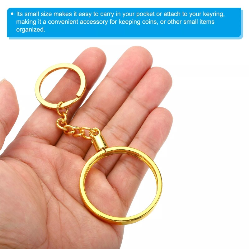 uxcell Coin Holder Keychain 40mm Round Medallion Holder with Metal Key Ring Golden